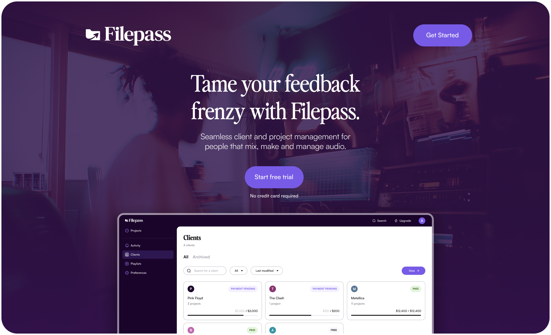 Filepass is a SaaS tool for music producers and audio professionals to help them streamline client management.